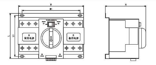 開(kāi)關(guān)工作有三個(gè)狀態(tài)位置供用戶選擇:常用電源(N)合、雙分、備用電源(R】合,開(kāi)關(guān)具